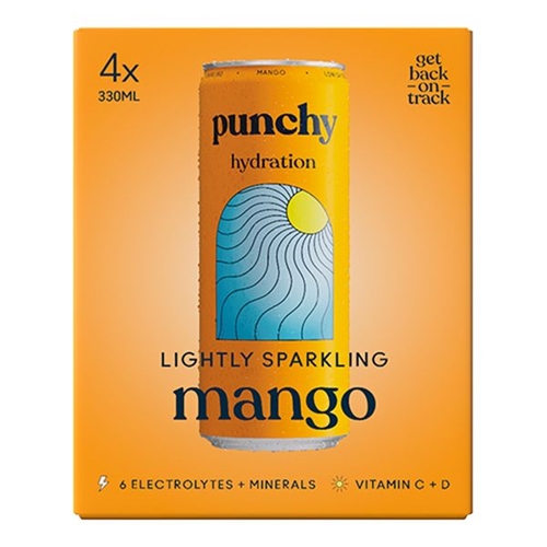 Carbonated Water, Agave Syrup, Beet Sugar, Fruit Juice From Concentrate (Lemon, Mango), Citric Acid, Natural Valencian Orange Flavouring, Natural Flavouring, Mineral Blend (Magnesium, Potassium, Himalayan Pink Salt, Calcium, Zinc), Vitamins (C & D).Nutritional Information: